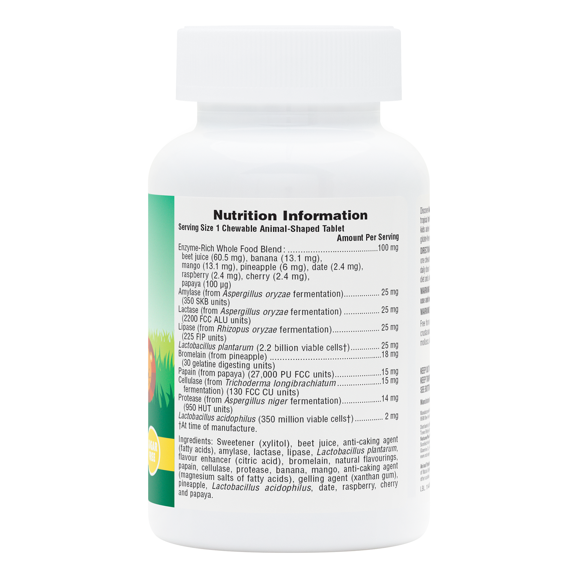 - KIDS LOVE IT: The fun, animal-shaped chewable tablets along with the delightful natural tropical fruit flavour makes our children's digestive supplement a favourite.