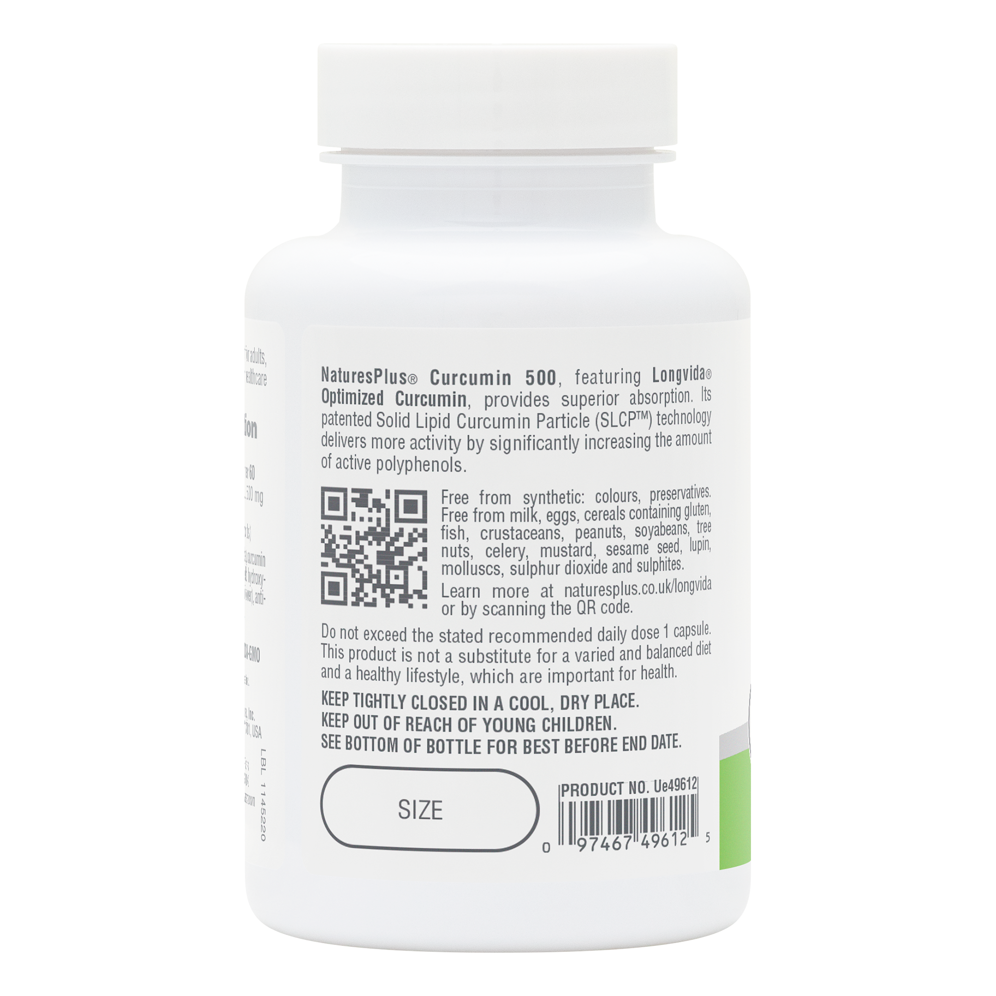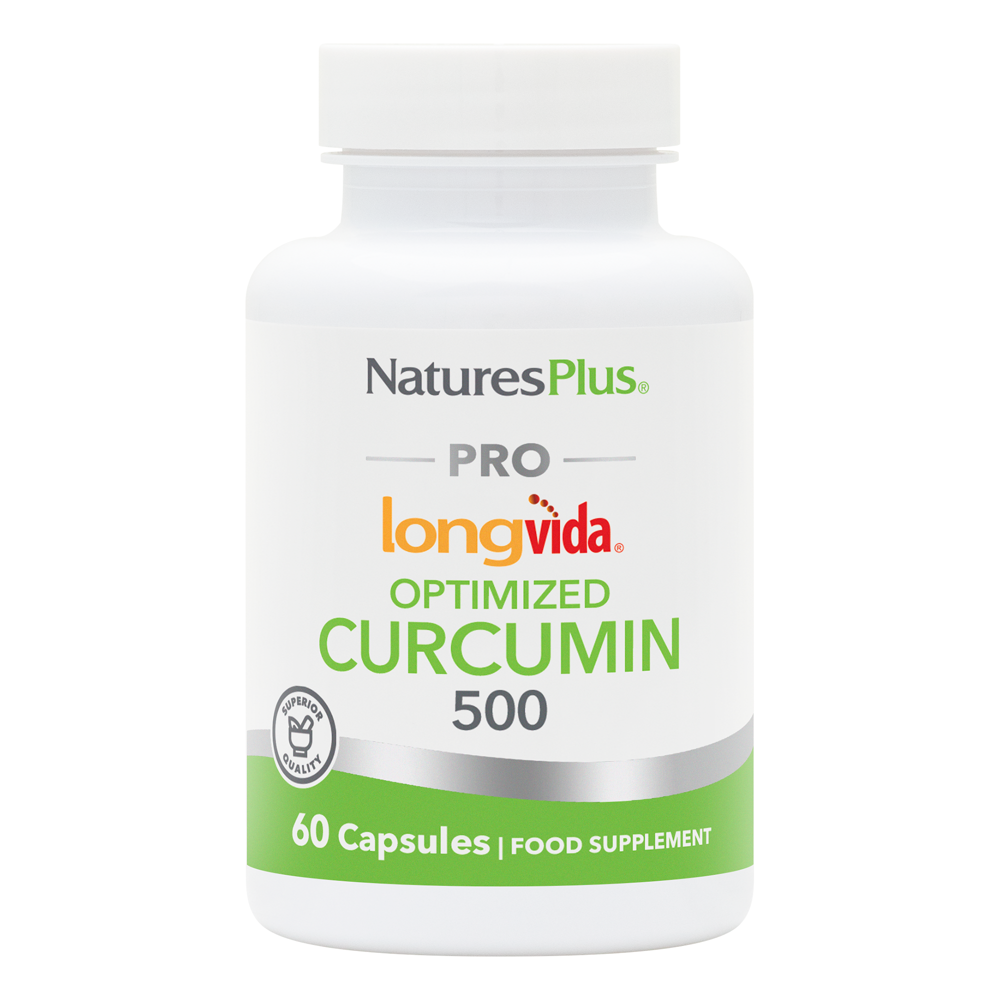 NaturesPlus® PRO Longvida® Curcumin Capsules feature 500 mg per serving of Optimized Curcumin formulated with patent-protected, clinically documented, Solid Lipid Curcumin Particle (SLCP™) technology.